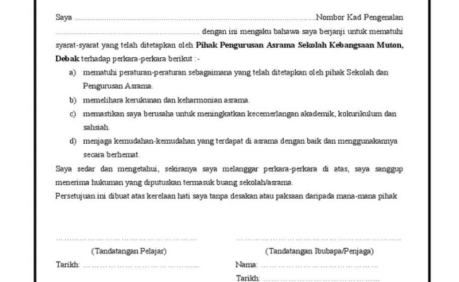 Contoh Surat Aku Janji Pelajar Asrama Otosection